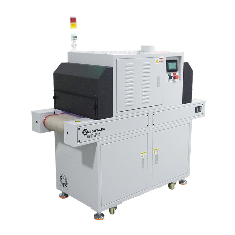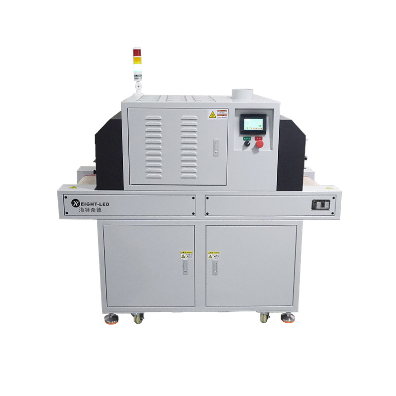 2、設(shè)備提供連續(xù)模式和后端模式、步進(jìn)模式可選,連續(xù)模式下,點(diǎn)擊啟動(dòng)按鈕,UV機(jī)傳送帶及 UVLED一直工作,點(diǎn)擊停止按鈕停止UV機(jī)工作;后端模式下,點(diǎn)擊啟動(dòng)按鈕,UV機(jī)傳送帶及UVLED開始工作,當(dāng)后端傳感器感應(yīng)到產(chǎn)品后,傳送帶及UVLED停止工作,當(dāng)產(chǎn)品拿走后繼續(xù)進(jìn)入下一個(gè)循環(huán);步進(jìn)模式下,點(diǎn)擊啟動(dòng)按鈕,UV機(jī)傳送帶開始工作,當(dāng)步進(jìn)傳感器感應(yīng)到產(chǎn)品,傳送帶停止運(yùn)行,UVLED以步進(jìn)參數(shù)工作,步進(jìn)參數(shù)運(yùn)行完成后,UVLED關(guān)閉,傳送帶開始工作,當(dāng)后端傳感器感應(yīng)到產(chǎn)品時(shí),傳送帶停止工作,當(dāng)產(chǎn)品拿走后繼續(xù)進(jìn)入下一個(gè)循環(huán)。
