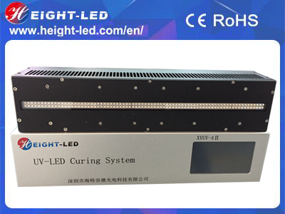 This is a high-performance UVLED curing system, the system includes the controller, UVLED irradiation head and cable. UVLED head with imported high-intensity UV LED integrated UV spectral wavelength of 365nm, 385nm, 395nm, 405nm, the use of forced air cooling, the effective curing area of 350X10mm, support for external signal input and trigger, can be equipped with semi-automatic or fully automated production line .