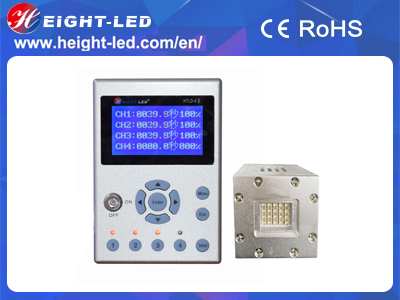 HTLD-4II-FS2020-NH is a high quality UVLED  curing system, the system includes the controller, UVLED irradiation head , controller and cable. UVLED head with imported high-intensity UV LED integrated UV spectral wavelength of 365nm, 385nm, 395nm, 405nm, the use of water cooling, the effective curing area of 20x20mm, support for external signal input and trigger,mainly used for the printing machine.