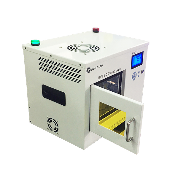 The UVLED curing oven is a high-performance UVLED surface light source curing system, which mainly includes an oven, UVLED irradiation head, and connecting wires. The UVLED irradiation head of this system is integrated with imported high-intensity ultraviolet LEDs. The UV spectrum wavelength is 395nm. It uses forced air cooling. The effective curing area is 150X150mm. It supports external signal input and triggering. It can be equipped with semi-automatic or fully automatic production lines.